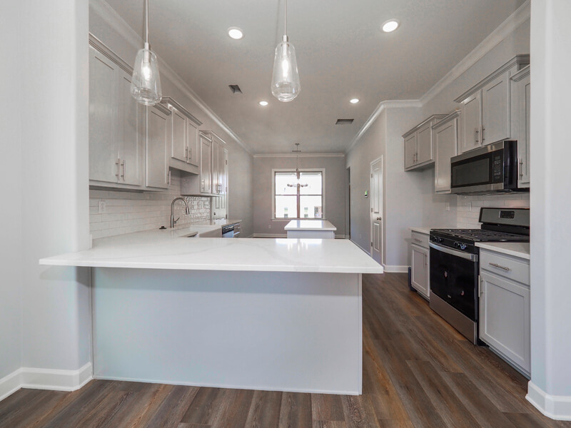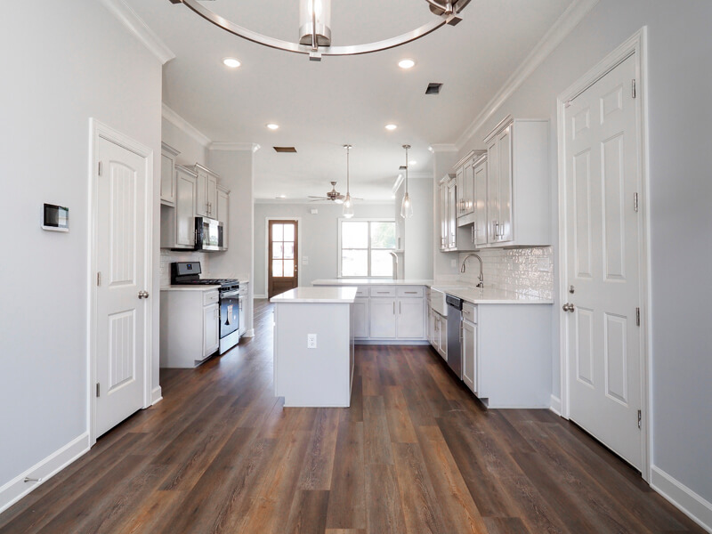 Upon entering this new construction home, you will find that the open concept living area is very spacious. The kitchen is a chef's dream with granite countertops and a convenient pantry. The custom kitchen cabinets are well placed and spacious enough to accommodate all your needs. The dining room is also large enough to accommodate a large family gathering.